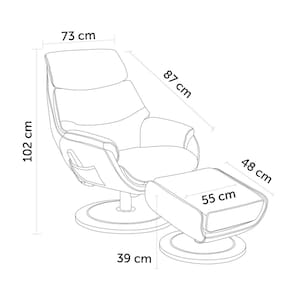 Acompanha um confortável apoio para os pés, também estofado, proporcionando uma experiência completa de descanso e bem-estar.