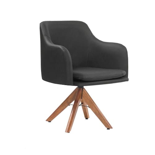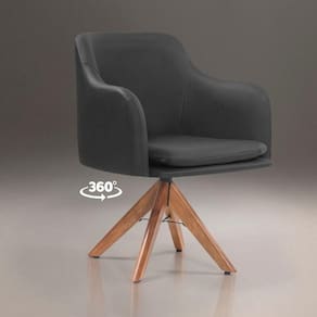 Poltrona Messina em Couro e Base Giratória Madeira Preto - Blush