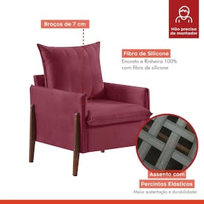 Poltronas são sempre uma boa ideia para aquelas casas que precisam de um reforço na hora de recepcionar com muito aconchego. O modelo MM23, por exemplo, é estofado e revestido em veludo para garantir uma sensação mais suave quando em contato com a pele e, de quebra, tem um design todo elegante, com formato perfeito para abraçar as suas costas e proporcionar momentos de muita comodidade. Graças à coloração marcante e acabamento almofadado, ela prova ser o móvel ideal para coroar o visual do cômodo em que escolher posicioná-la, acompanhando o bate-papo com cafezinho durante a tarde ou ainda aquela leitura antes de dormir. A décor do seu doce lar agradece ;) Acompanha Almofadas extras: Não Acompanha Puff: Não Almofada do assento: Fixa Almofada do encosto: Removível Altura do assento até o chão: 48 Altura do Encosto: 27 Altura dos Pés: 51 Ambiente Principal: Sala de Estar Cor: Marsalla Cor do Produto: Marsalla Design Assinado: Não Enchimento do Assento: Espuma D-28 Enchimento do Braço: Espuma D-28 Enchimento do Encosto: Fibra Siliconada Encosto para a Cabeça: Não Estampado: Não Extensível: Não Firmeza do Assento: Firme Itens Inclusos: 1 Poltrona Material do Braço: Madeira de Eucalipto e Espuma Material dos Pés: Madeira Modelo de Poltrona: Fixo Necessita Montagem: Não Origem do Produto: Nacional Peso: 29 Possui Percintas Elásticas: Sim Possui Pés: 04 Possui Rodízio: Não Recomendações de Uso, Manutenção e Limpeza: Não expor diretamente à luz do sol e à umidade; Suporta Até (kg): 120 Tecido Predominante: Veludo Tipo de Assento: Fixo Tipo de Encosto: Fixo Tipo de Espuma do Assento: Espuma Hiper Soft Tipo de Espuma do Encosto: Fibra Siliconada Tipo de Poltrona: Decorativa Marca: Estofados Martins