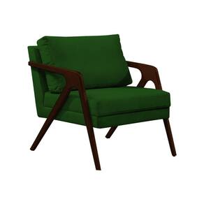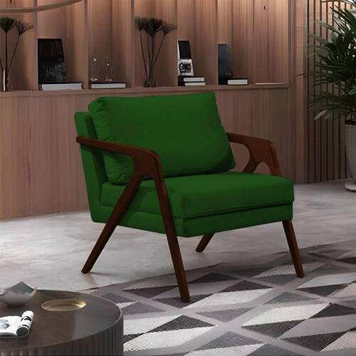 AS IMAGENS SÃO MERAMENTE ILUSTRATIVAS E PODEM SOFRER VARIAÇÕES DE COR E PEQUENOS DETALHES DE ACORDO COM O SEU MONITOR, ILUMINAÇÃO DO AMBIENTE E ATÉ MESMO A SUA PERCEPÇÃO VISUAL.Poltrona Mona Monique Luxo Base Madeira MaciÃa Castanho Veludo Verde