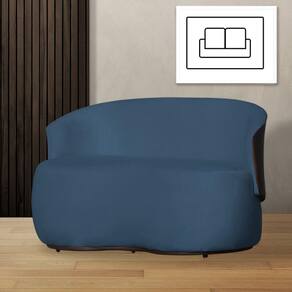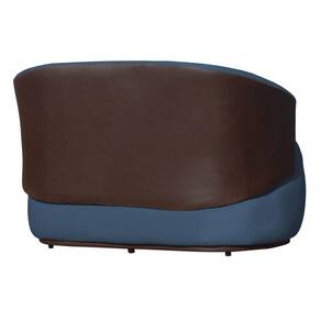 Poltrona Namoradeira Beatriz 2 Lugares Tecido Suede Com Composê em Corino Marrom - Azul Royal