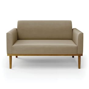 Poltrona Namoradeira Decorativa Isabella Pés Fixo Em Madeira Castanho Suede Nude G19 - Gran Belo
