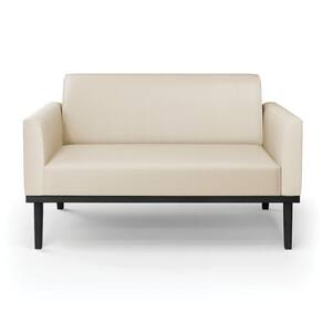Poltrona Namoradeira Decorativa Pés Fixo Em Madeira Preto Pu Bege - Blush