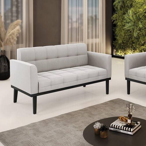 Poltrona Namoradeira Decorativa Pés Fixo Em Madeira Preto Veludo Cinza - Blush