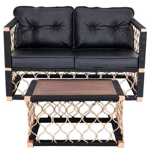 Poltrona Namoradeira e Mesa de centro com tampo de madeira - TRAMA