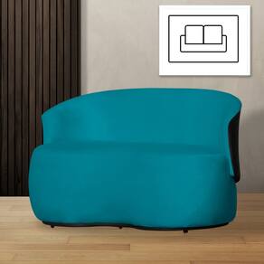 Poltrona Namoradeira Sofá Orgânico 2 Lugares Beatriz Suede Composê Preto - Azul Turquesa