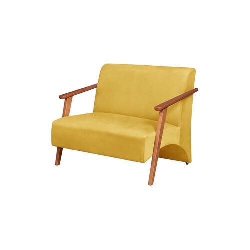 Poltrona Namoradeira Venus Braço Madeira Maciça Suede Unidecor - Amarelo