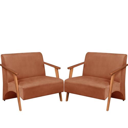 Kit 2 Poltronas Namoradeira Venus Braço Madeira Maciça Suede Unidecor