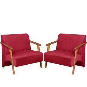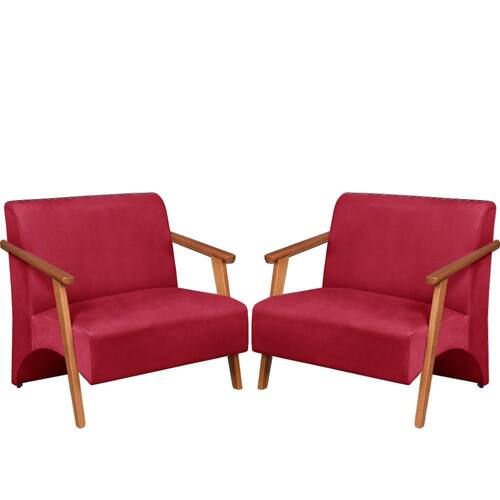 Poltrona Namoradeira Venus Braço Madeira Maciça Suede Unidecor - Vermelho
