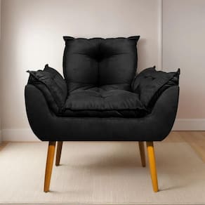 Poltrona Opala Decorativa Preta Ideal para Sala de Estar, Recepção e Amamentação