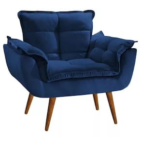 Poltrona Opala Decorativa Reforçada Suede Azul Marinho