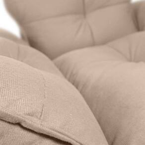 Produzida com estrutura em madeira de reflorestamento (eucalipto), oferece resistência e longa vida útil. O assento, encosto e braças são confeccionados com misto de fibra siliconada e flocos de espuma, garantindo conforto macio e ergonômico. Os pés em madeira com 30 cm de altura proporcionam estabilidade e um toque sofisticado ao visual.