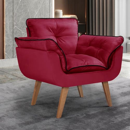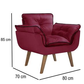 Ela é um item de pura elegância para sua sala de estar, a qual possui um tamanho ideal, com medidas pensadas para seu conforto e bem-estar, um item confeccionado especialmente para você que procura conforto após um longo dia de trabalho! Acompanha Almofadas extras: Não Acompanha Puff: Não Almofada do assento: Fixa Almofada do encosto: Fixa Altura do assento até o chão: 33 cm Altura do Encosto: 37 cm Ambiente Principal: Sala de Estar Complexidade da Montagem: Baixa: pode ser montado por uma pessoa sozinha Cor: Vermelho/Preto Cor do Produto: Vermelho/Preto Design Assinado: Não Enchimento do Assento: Espuma D-28 Enchimento do Braço: Fibra Siliconada Enchimento do Encosto: Fibra Siliconada Encosto para a Cabeça: Não Estampado: Não Extensível: Não Firmeza do Assento: Médio Itens Inclusos: 1 Poltrona Linha ou Coleção: Opalla Material do Braço: Madeira Material dos Pés: Madeira Maciça Modelo de Poltrona: Fixo Necessita Montagem: Sim Origem do Produto: Nacional Peso: 15 kg Possui Percintas Elásticas: Sim Possui Pés: 04 Possui Rodízio: Não Recomendações de Uso, Manutenção e Limpeza: Para a limpeza, utilizar pano umedecido em água, sabão neutro e escova de cerdas macias, deixando secar à sombra. Em caso de excesso de poeira, usar aspirador de pó. Sistema de Montagem: Parafusos Suporta Até (kg): 120 kg Tecido Predominante: Veludo Tipo de Assento: Fixo Tipo de Encosto: Fixo Tipo de Espuma do Assento: Fibra Siliconada Tipo de Espuma do Encosto: Fibra Siliconada Tipo de Poltrona: Decorativa