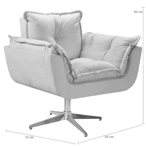 Material da estrutura: Madeira Enchimento do encosto e do assento: Fibra Siliconada Peso Suportado: 120 kg Tipo de Base: Giratória Alumínio Tecido / Revestimento: Suede