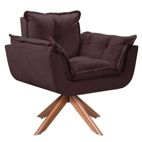 Poltrona Opalla Giratória Madeira Suede D Salla - Marrom