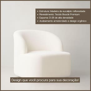 poltrona aloh bouclé | poltrona orgânica moderna | poltrona de sala confortável | poltrona bouclé premium | poltrona decorativa aconchegante | poltrona design contemporâneo | poltrona estofada com base de madeira | poltrona orgânica FRI Varejo