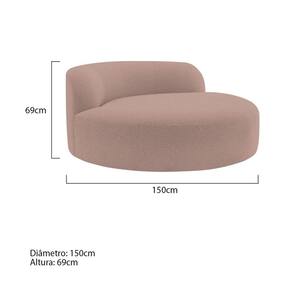 Descubra a Poltrona Redonda Chaise Rússia, uma peça que combina perfeitamente estilo moderno com conforto envolvente. Seu design circular e acolhedor não apenas oferece um visual contemporâneo, mas também proporciona um espaço íntimo e relaxante em qualquer ambiente da sua casa. Ideal para criar um canto de leitura acolhedor na sala de estar, ou para adicionar um toque de elegância ao seu escritório, esta poltrona se destaca pela sua versatilidade e conforto. Medidas da Poltrona: Diâmetro: 150 cm Altura: 69 cm Observações importantes - Produto para uso residencial em ambiente interno, não devendo ficar exposto diretamente ao sol, calor e umidades excessivas. - Pode haver alguma diferença de tonalidade entre a imagem e o produto real, por conta do tratamento de imagens e a calibração de cores do seu monitor. - As imagens são meramente ilustrativas, não acompanham objetos de decoração e eletrônicos. - Ao receber a mercadoria, o cliente deve verificar as condições da embalagem, caso haja alguma não assine o de . - Montagem, desmontagem e outras instalações serão de responsabilidade do cliente. Não nos responsabilizamos, no ato da , por subir escadas/elevadores ou pelo por guincho em apartamentos. Eventuais despesas são de responsabilidade do comprador. - Confira as dimensões do produto e certifique-se de que passará normalmente por supostos elevadores, portas, escadas e/ou corredores de sua residência