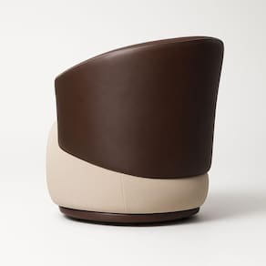 Revestida em tecido bouclê off-white, sua textura macia e levemente felpuda convida ao toque, criando uma atmosfera acolhedora. O detalhe em corino marrom acrescenta um contraste elegante, reforçando sua presença marcante em ambientes de estilo contemporâneo ou escandinavo com personalidade.