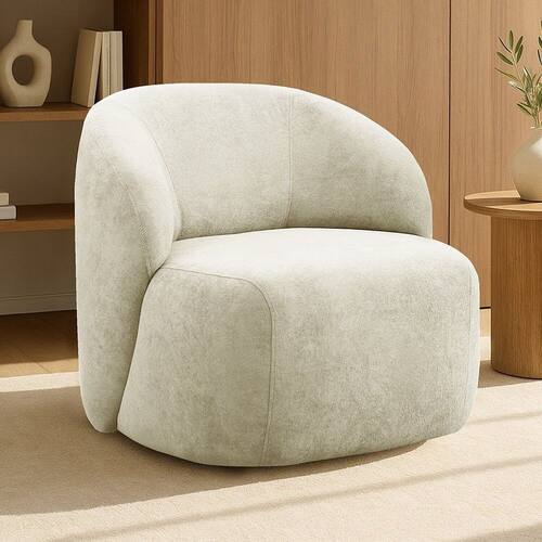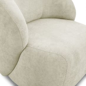 Madeira de eucalipto reflorestada, MDF, Aço, Tecido Bouclê, Espuma D-26, Molas espirais, Percintas elásticas, Espuma D-20 (braço).Vendido e entregue por MadeiraMadeira