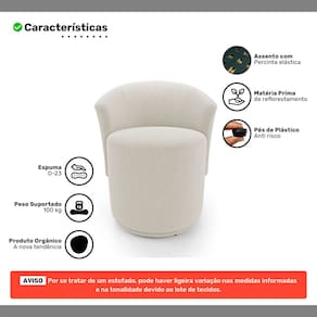 Poltrona Orgânica Living Mavi Fixa Bouclê Creme - Desk Design - Bege Claro