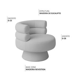 Poltrona Orgânica Mabel Base Giratória Bouclé Cinza Claro - Nexta Casa Poltrona Mabel Charme Contemporâneo e Conforto Acolhedor Transforme seu espaço com uma peça que une sofisticação e serenidade em cada curva!Descrição do Produto A Poltrona Mabel, da Nexta Casa, é a definição de elegância e versatilidade. Com linhas curvas suaves e design contemporâneo, ela se adapta a diversos estilos de decoração, do minimalista ao mais ousado, trazendo charme a salas de estar, quartos ou escritórios. Revestida em tecido Bouclé, oferece uma textura macia e um visual sofisticado, perfeito para criar um ambiente acolhedor. A estrutura em madeira reflorestada de eucalipto garante durabilidade, enquanto a espuma D-28 HR no assento, sobre chapas de OSB, e D-23 no encosto, sobre percintas elásticas de nylon, proporcionam conforto ergonômico para momentos de relaxamento. Sua base em forma de cone em madeira revestida suporta até 100 kg, unindo estabilidade e estética natural. Compacta e pronta para uso imediato, a Poltrona Mabel é a peça ideal para embelezar seu cantinho favorito! Características Técnicas Estrutura: Madeira reflorestada de eucalipto tratada, com partes em MDF e OSB robustez e sustentabilidade. Assento: Espuma D-28 HR sobre chapas de OSB conforto firme e duradouro. Encosto: Espuma D-23 sobre percintas elásticas de nylon suporte ergonômico ideal. Revestimento: Bouclé visual sofisticado e toque macio. Base/Pés: Madeira revestida, giratória. Peso Suportado: Até 100 kg sem impacto. Medidas Altura Total: 80 cm Largura: 84 cm Profundidade: 75 cm Peso: 23 kg Altura do Encosto: 32 cm Altura do Assento ao Chão: 48 cm Largura do Assento: 50 cm Profundidade do Assento: 57 cm Altura do Braço ao Assento: 32 cm Largura do Braço: 18 cm Altura dos Pés: 25 cm Diferenciais Design moderno linhas curvas suaves para um visual contemporâneo e versátil. Compacta e versátil ideal para diversos ambientes, de salas a escritórios. Espuma D-28 HR no assento conforto de alta qualidade. estabilidade e charme natural Quantidade de Volumes: 1. Não necessita de montagem pronta para uso imediato! Cuidados Utilizar um pano levemente umedecido com água, seguido de pano seco. Evitar exposição ao sol para preservar a cor vibrante do tecido. Não sentar nos braços ou encosto do produto. Não usar produtos abrasivos ou escovas. Garantia 3 meses contra de fabricação. Observações Imagens ilustrativas; tonalidade pode variar devido à configuração de cores da tela. Objetos de decoração não inclusos. Produtos enviados embalados com , reduzindo riscos de danos. Verificar as condições da embalagem na e reportar danos no . até a porta de entrada ou portaria. Confirme as dimensões e compatibilidade do de instalação. Não nos responsabilizamos por montagem, desmontagem, instalação ou por escadas/elevadores. Marca: Não Informado