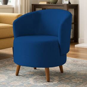 Poltrona Orgânica Suede Aisha Sala Escritório Pé Madeira Marinho - Azul | Marinho
