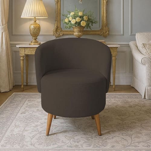 Poltrona Orgânica Suede Aisha Sala Escritório Pé Madeira Marrom