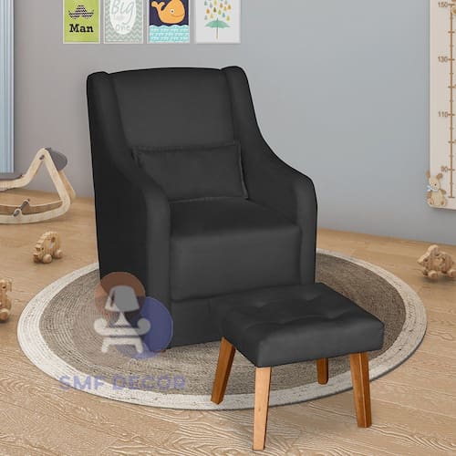 Poltrona para Amamentação Glamour com Puff e Almofada - Preto