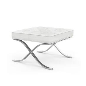 AS IMAGENS SÃO MERAMENTE ILUSTRATIVAS E PODEM SOFRER VARIAÇÕES DE COR E PEQUENOS DETALHES DE ACORDO COM O SEU MONITOR, ILUMINAÇÃO DO AMBIENTE E ATÉ MESMO A SUA PERCEPÇÃO VISUAL.Poltrona para Leitura Barcelona com Puff Courissimo Cromada - Branco