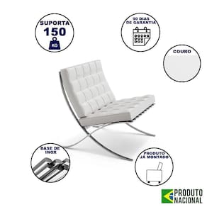 AS IMAGENS SÃO MERAMENTE ILUSTRATIVAS E PODEM SOFRER VARIAÇÕES DE COR E PEQUENOS DETALHES DE ACORDO COM O SEU MONITOR, ILUMINAÇÃO DO AMBIENTE E ATÉ MESMO A SUA PERCEPÇÃO VISUAL.Poltrona para Leitura Barcelona Inox Couro LegÃtimo Branco