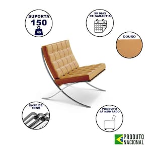 AS IMAGENS SÃO MERAMENTE ILUSTRATIVAS E PODEM SOFRER VARIAÇÕES DE COR E PEQUENOS DETALHES DE ACORDO COM O SEU MONITOR, ILUMINAÇÃO DO AMBIENTE E ATÉ MESMO A SUA PERCEPÇÃO VISUAL.Poltrona para Leitura Barcelona Inox Couro LegÃtimo Caramelo