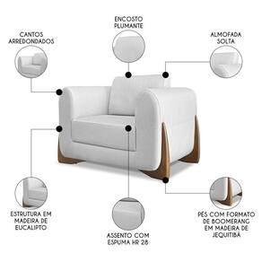 O kit de Poltrona para Sala é revestido em linho de alta qualidade, proporcionando uma textura agradável ao toque. Os pés da poltrona são um destaque à parte, com acabamento em madeira de jequitibá, conhecida por sua durabilidade e beleza natural. A estrutura é feita de madeira maciça de eucalipto, garantindo resistência e durabilidade. O assento é equipado com espuma de alta resiliência HR28, complementada por plumante em silicone, oferecendo um equilíbrio perfeito entre suporte e maciez. O design dos pés em formato boomerang, com 8 cm de altura na cor mel, adiciona um toque retro-moderno à peça. Esse kit de Poltrona Decorativa é a decoração que reflete sofisticação e um padrão de acabamento de alto nível para a sua Sala de Estar.