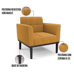 A Poltrona Elisa é uma poltrona que combina elegância, conforto e durabilidade. Ela tem um design retrô e sofisticado, com Base de Madeira Fixa Preto e revestimento em tecido Bouclê Mostarda, que harmonizam com qualquer ambiente. Ela é ideal para sala de estar, recepções, escritórios, cozinhas ou qualquer outro espaço que você queira decorar com estilo e bom gosto. Ela tem uma estrutura em madeira de reflorestamento eucalipto, que garante a resistência e a sustentabilidade do produto. Ela suporta até 120 kg de peso, podendo ser utilizada por pessoas de diferentes biotipos. Ela tem um acabamento reforçado e espuma de qualidade D23, que oferece maciez e aconchego. Ela contém detalhes de costura no encosto e assento, resultando em um acabamento impecável, conferindo muito mais valor e elegância ao produto. A Poltrona Elisa é um móvel de alta qualidade, beleza e funcionalidade. Ela é fácil de transportar, pois tem um peso leve e um tamanho compacto. A Poltrona Elisa é um produto que vai fazer a diferença na sua decoração e no seu bem-estar. Ela vai trazer charme, conforto e durabilidade para o seu ambiente. Aproveite essa oferta e leve para casa uma poltrona de qualidade por um preço incrível. Essa é a sua chance de ter uma poltrona maravilhosa por um preço imperdível. Corra e garanta a sua antes que acabe o estoque!