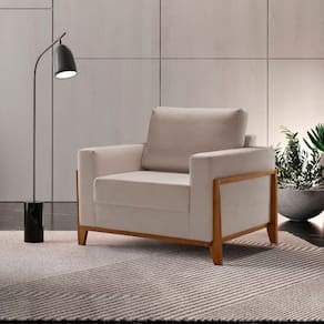 Estofada com tecido de alta qualidade e estrutura resistente, a Poltrona Paris garante durabilidade e bem-estar. Os acabamentos em madeira trazem um toque natural e aconchegante, valorizando qualquer decoração com personalidade e bom gosto. Acompanha Almofadas extras: Não Acompanha Puff: Não Almofada do assento: Fixa Almofada do encosto: Removível Altura do assento até o chão: 46 cm Altura do Encosto: 50 cm Altura dos Pés: 13 cm Ambiente Principal: Sala de Estar codigo_ean: 7900288127785 Complexidade da Montagem: Média: pode ser montado por mais de uma pessoa e/ou necessite de maior conhecimento para montagem Cor: Bege Cor do Produto: Bege Design Assinado: Não Enchimento do Assento: Espuma D-28 Encosto para a Cabeça: Não Estampado: Não Extensível: Não Firmeza do Assento: Firme Itens Inclusos: 1 Poltrona e Kit Ferragens Manual de Montagem e Instalação: https://product-hub-prd.madeiramadeira.com.br/999949/documents/148d2eca-5f42-40a3-8a34-23897ad71ab22859747599717448244385732.pdf Marca: Encantare Material dos Pés: Madeira eucalipto Modelo de Poltrona: Fixo Necessita Montagem: Sim Origem do Produto: Nacional Peso: 50 kg Possui Percintas Elásticas: Sim Possui Pés: 04 Possui Rodízio: Não Recomendações de Uso, Manutenção e Limpeza: Limpeza com pano limpo Sistema de Montagem: Parafusos Suporta Até (kg): 100 kg Tecido Predominante: Boucle Tipo de Assento: Fixo Tipo de Encosto: Fixo Tipo de Espuma do Assento: Espuma Convencional Tipo de Poltrona: Decorativa Marca: Encantare