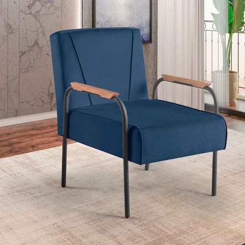 Com suas linhas limpas e elegantes, a Poltrona Apolo Veludo não apenas complementa qualquer ambiente, mas se destaca como um ponto focal de refinamento. O estofamento em veludo de alta qualidade oferece uma experiência tátil excepcionalmente suave, convidando-o a se acomodar e relaxar profundamente. Acompanha Almofadas extras: Não Acompanha Puff: Não Almofada do assento: Não Possui Almofada do encosto: Não Possui Altura do assento até o chão: 45 cm Altura do Encosto: 45 cm Ambiente Principal: Sala de Estar Cor: Azul Marinho Cor do Produto: Azul Marinho Design Assinado: Não Enchimento do Braço: Não Possui Encosto para a Cabeça: Não Estampado: Não Extensível: Não Itens Inclusos: 1 Poltrona Material do Braço: Madeira Material dos Pés: Aço Modelo de Poltrona: Fixo Necessita Montagem: Não Peso: 15 kg Possui Percintas Elásticas: Não Possui Pés: 04 Possui Rodízio: Não Recomendações de Uso, Manutenção e Limpeza: Para a limpeza, utilizar pano umedecido em água, sabão neutro e escova de cerdas macias, deixando secar à sombra. Em caso de excesso de poeira, usar aspirador de pó. Suporta Até (kg): 120 kg Tecido Predominante: Veludo Tipo de Assento: Fixo Tipo de Encosto: Fixo Tipo de Poltrona: Decorativa
