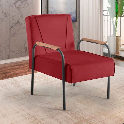 Com suas linhas limpas e elegantes, a Poltrona Apolo Veludo não apenas complementa qualquer ambiente, mas se destaca como um ponto focal de refinamento. O estofamento em veludo de alta qualidade oferece uma experiência tátil excepcionalmente suave, convidando-o a se acomodar e relaxar profundamente. Acompanha Almofadas extras: Não Acompanha Puff: Não Almofada do assento: Não Possui Almofada do encosto: Não Possui Altura do assento até o chão: 45 cm Altura do Encosto: 45 cm Ambiente Principal: Sala de Estar Cor: Vermelho Cor do Produto: Vermelho Design Assinado: Não Enchimento do Braço: Não Possui Encosto para a Cabeça: Não Estampado: Não Extensível: Não Itens Inclusos: 1 Poltrona Material do Braço: Madeira Material dos Pés: Aço Modelo de Poltrona: Fixo Necessita Montagem: Não Peso: 15 kg Possui Percintas Elásticas: Não Possui Pés: 04 Possui Rodízio: Não Recomendações de Uso, Manutenção e Limpeza: Para a limpeza, utilizar pano umedecido em água, sabão neutro e escova de cerdas macias, deixando secar à sombra. Em caso de excesso de poeira, usar aspirador de pó. Suporta Até (kg): 120 kg Tecido Predominante: Veludo Tipo de Assento: Fixo Tipo de Encosto: Fixo Tipo de Poltrona: Decorativa