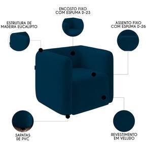 Altura: 75 cm | AssemblyRequired: Sim, sugerimos a contratação do nosso serviço de montagem (para os CEPs em que o serviço está dispon | Color: Azul Marinho | ColorFamily: Azul Marinho | ColorSimple: Azul Marinho | ColorSupplier: Azul Marinho | Cor: Azul Marinho | Gênero: Unisex | Largura: 80 cm | Manual: Sim | Marca: Mpozenato | Material: Madeira de Eucalipto | MaterialFamily: Madeira de Eucalipto | Model: Maggie | Origem: | OriginCountry: | OriginState: PR | Peso: 15 kg | Peso Suportado: 120 kg | ProductContents: 1 Poltrona | ProductHeight: 75 | ProductInstructions: Produto para uso em ambiente interno, nao devendo ficar exposto ao sol, calor e umidade excessivos. | ProductLength: 72 | ProductWarranty: 90 dias após o do produto | ProductWeight: 15 | ProductWidth: 80 | Profundidade: 72 cm | Requere montagem: Sim | SizeDescription: 75 x 80 x 72 cm | SupplierSimpleName: Poltrona para Sala de Estar Decorativa Quadrada Maggie K04 Veludo Azul Marinho - Mpozenato | Tipo de : Fabricante