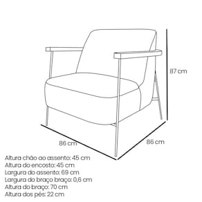 Informações Complementares: Poltrona Ellie traz um design europeu que a torna única no mercado, revestido em linho boucle padrão de venda, sua base em aço carbono a deixa resistente, Pintura epóxi, aplique braço em madeira maciça padrão exportação. Design incrível combina com todos