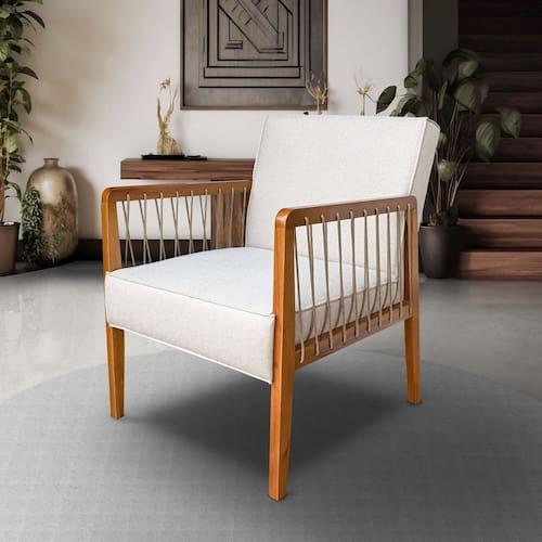 Tramada em corda náutica a poltrona Ely traz um design único a sua essência, sua base resistente consiste em madeira maciça padrão exportação, seu conforto é sem igual, a poltrona se destaca principalmente em área gourmet ou sacadas ou no local desejado trazendo muito charme. Acompanha Almofadas extras: Não Acompanha Puff: Não Almofada do assento: Fixa Almofada do encosto: Fixa Altura do assento até o chão: 44 Altura do Encosto: 46 Ambiente Principal: Sala de Estar Cor: Cinza Claro Cor do Produto: Cinza Claro Design Assinado: Não Enchimento do Assento: Espuma D-28 Enchimento do Braço: Não Possui Enchimento do Encosto: Espuma D-23 Encosto para a Cabeça: Não Estampado: Não Extensível: Não Firmeza do Assento: Médio Informações Complementares: Tramada em corda náutica a poltrona Ely traz um design único a sua essência, sua base resistente consiste em madeira maciça padrão exportação, seu conforto é sem igual, a poltrona se destaca principalmente em área gourmet ou sacadas ou no local desejado t Itens Inclusos: 1 poltrona Linha ou Coleção: Ely Manual de Montagem e Instalação: https://product-hub-prd.madeiramadeira.com.br/909761/documents/f469191c-6c09-4ee1-ab05-c6ba4444cb981975657412217163966067874.pdf Material do Braço: Madeira Maciça Modelo de Poltrona: Fixo Necessita Montagem: Não Origem do Produto: Nacional Peso: 19 kg Possui Percintas Elásticas: Sim Possui Pés: Não Recomendações de Uso, Manutenção e Limpeza: Limpeza: Utilize pano levemente úmido Suporta Até (kg): 100 Tecido Predominante: Linho Tipo de Assento: Fixo Tipo de Encosto: Fixo Tipo de Espuma do Assento: Espuma HR Tipo de Poltrona: Decorativa