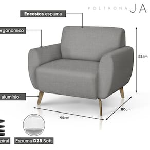 A Poltrona Jade oferece conforto excepcional, materiais de alta qualidade, longa durabilidade e versatilidade, tudo isso a um preço acessível. O conforto é assegurado pelo luxuoso tecido e pela maciez da espuma no assento, sua estrutura garante uma durabilidade excepcional. Adquira sua poltrona Jade agora mesmo e recepcione seus convidados com conforto e elegância incomparáveis Acompanha Almofadas extras: Não Acompanha Puff: Não Almofada do assento: Fixa Almofada do encosto: Fixa Altura do assento até o chão: 44 cm Altura do Encosto: 42 cm Altura dos Pés: 17 cm Ambiente Principal: Sala de Estar Cor: Castor Cor do Produto: Castor Design Assinado: Não Enchimento do Assento: Espuma D-28 Enchimento do Braço: Espuma D-28 Enchimento do Encosto: Espuma D-28 Encosto para a Cabeça: Não Estampado: Não Extensível: Não Firmeza do Assento: Macio Informações Complementares: Não Itens Inclusos: 1 poltrona Material do Braço: Sim Material dos Pés: Aluminio Modelo de Poltrona: Fixo Necessita Montagem: Não Origem do Produto: Nacional Peso: 32 kg Possui Percintas Elásticas: Sim Possui Pés: 04 Possui Rodízio: Não Recomendações de Uso, Manutenção e Limpeza: Não Suporta Até (kg): 120 kg Tecido Predominante: Veludo Tipo de Assento: Fixo Tipo de Encosto: Fixo Tipo de Espuma do Assento: Soft Tipo de Espuma do Encosto: Soft Tipo de Poltrona: Decorativa Marca: ESTOFADOS GRAFANI