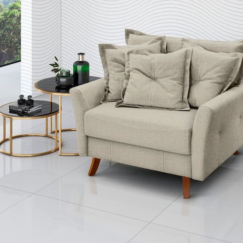 A Poltrona Love oferece conforto excepcional, materiais de alta qualidade, longa durabilidade e versatilidade, tudo isso a um preço acessível. O conforto é assegurado pelo luxuoso tecido e pela maciez da espuma no assento, sua estrutura garante uma durabilidade excepcional. Adquira sua poltrona Love agora mesmo e recepcione seus convidados com conforto e elegância incomparáveis Acompanha Almofadas extras: 04 Acompanha Puff: Não Almofada do assento: Fixa Almofada do encosto: Removível Altura do assento até o chão: 43 cm Altura do Encosto: 42 cm Altura dos Pés: 17 cm Ambiente Principal: Sala de Estar Cor: Marfin Cor do Produto: Marfin Design Assinado: Não Enchimento do Assento: Espuma D-28 Enchimento do Braço: Espuma D-28 Encosto para a Cabeça: Não Estampado: Não Extensível: Não Firmeza do Assento: Macio Informações Complementares: Não Itens Inclusos: 1 poltrona 4 Almofadas Material do Braço: Sim Material dos Pés: Madeira Modelo de Poltrona: Fixo Necessita Montagem: Não Origem do Produto: Nacional Peso: 35 kg Possui Percintas Elásticas: Sim Possui Pés: 04 Possui Rodízio: Não Recomendações de Uso, Manutenção e Limpeza: Não Suporta Até (kg): 120 kg Tecido Predominante: Linho Tipo de Assento: Fixo Tipo de Encosto: Fixo Tipo de Espuma do Assento: Soft Tipo de Poltrona: Decorativa Marca: ESTOFADOS GRAFANI