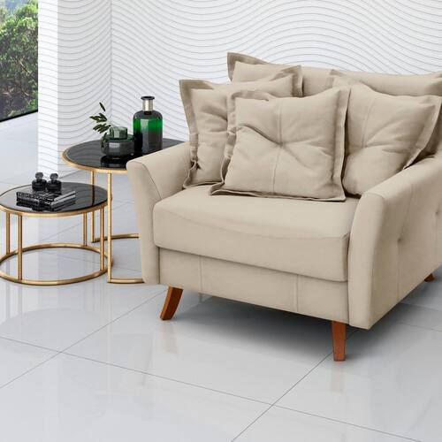 A Poltrona Love oferece conforto excepcional, materiais de alta qualidade, longa durabilidade e versatilidade, tudo isso a um preço acessível. O conforto é assegurado pelo luxuoso tecido e pela maciez da espuma no assento, sua estrutura garante uma durabilidade excepcional. Adquira sua poltrona Love agora mesmo e recepcione seus convidados com conforto e elegância incomparáveis Acompanha Almofadas extras: 04 Acompanha Puff: Não Almofada do assento: Fixa Almofada do encosto: Removível Altura do assento até o chão: 43 cm Altura do Encosto: 42 cm Altura dos Pés: 17 cm Ambiente Principal: Sala de Estar Cor: Marfin Cor do Produto: Marfin Design Assinado: Não Enchimento do Assento: Espuma D-28 Enchimento do Braço: Espuma D-28 Encosto para a Cabeça: Não Estampado: Não Extensível: Não Firmeza do Assento: Macio Informações Complementares: Não Itens Inclusos: 1 poltrona 4 Almofadas Material do Braço: Sim Material dos Pés: Madeira Modelo de Poltrona: Fixo Necessita Montagem: Não Origem do Produto: Nacional Peso: 35 kg Possui Percintas Elásticas: Sim Possui Pés: 04 Possui Rodízio: Não Recomendações de Uso, Manutenção e Limpeza: Não Suporta Até (kg): 120 kg Tecido Predominante: Veludo Tipo de Assento: Fixo Tipo de Encosto: Fixo Tipo de Espuma do Assento: Soft Tipo de Poltrona: Decorativa Marca: ESTOFADOS GRAFANI