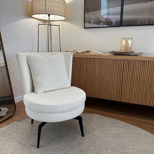Poltrona Lynn Giratória é delicada, compacta e com desenho sofisticado. Seus pés giratórios em aço complementam o desenho arredondado do encosto e do assento. Uma peça de alta qualidade e com desenho delicado ideal para dormitórios, salas, ambientes corporativos, entre outros. Assento espuma D30. Almofada em plumante siliconado.