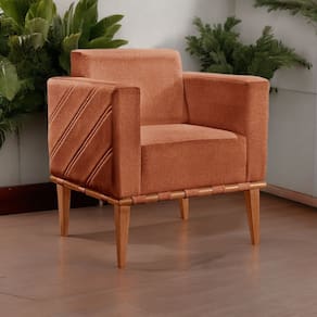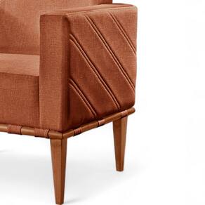 Verificar dimensões para acesso ao local de uso Acompanha Almofadas extras: Não Acompanha Puff: Não Almofada do assento: Não Possui Almofada do encosto: Fixa Altura do assento até o chão: 46 cm Altura do Encosto: 40 cm Altura dos Pés: 26 cm Ambiente Principal: Sala de Estar Complexidade da Montagem: Baixa: pode ser montado por uma pessoa sozinha Cor: Terracota Cor do Produto: Terracota Design Assinado: Não Enchimento do Braço: Espuma D-26 Enchimento do Encosto: Espuma D-26 Encosto para a Cabeça: Não Estampado: Não Extensível: Não Informações Complementares: Bordado na lateral do braço. Detalhe no acabamento da madeira da base. Itens Inclusos: 1 Poltrona Linha ou Coleção: PREMIUM Material do Braço: Madeira Estofada Material dos Pés: Madeira Maciça Modelo de Poltrona: Fixo Necessita Montagem: Sim Origem do Produto: Nacional Peso: 18 kg Possui Percintas Elásticas: Sim Possui Pés: 04 Possui Rodízio: Não Recomendações de Uso, Manutenção e Limpeza: Utilizar um pano levemente umedecido, seguido de pano seco.Evitar exposição ao sol, para que não sofra alterações na cor do tecido.Não limpar com escovas ou semelhantes. Sistema de Montagem: Enroscar os pés na base Suporta Até (kg): 140 kg Tecido Predominante: Linho Tipo de Assento: Fixo Tipo de Encosto: Fixo Tipo de Espuma do Encosto: Soft Tipo de Poltrona: Decorativa