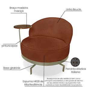 Poltrona Giratória Normah traz um design europeu que há torna única no mercado, revestida em linho Boucle tendência no mercado, sua base giratória em aço carbono a deixa resistente, Pintura epóxi, aplique braço em madeira maciça padrão exportação. Design incrível combina com todos ambientes. Acompanha Almofadas extras: Não Acompanha Puff: Não Almofada do assento: Fixa Almofada do encosto: Fixa Altura do assento até o chão: 43 cm Altura do Encosto: 35 cm Altura dos Pés: 22 cm Ambiente Principal: Sala de Estar Cor: Terracota Cor do Produto: Terracota Design Assinado: Não Enchimento do Assento: Espuma D-28 Enchimento do Braço: Não Possui Enchimento do Encosto: Espuma D-23 Encosto para a Cabeça: Não Estampado: Não Extensível: Não Firmeza do Assento: Médio Informações Complementares: Poltrona Giratória Normah traz um design europeu que há torna única no mercado, sua base em aço carbono a deixa resistente, Pintura epóxi, aplique braço em madeira maciça exportação. Design incrível combina com todos ambientes. Itens Inclusos: 1 poltrona Linha ou Coleção: Normah Manual de Montagem e Instalação: https://product-hub-prd.madeiramadeira.com.br/909651/documents/34ec94b6-0f6a-47fa-b3bd-f5f77680b79c1974142412217163218306231.pdf Material do Braço: Madeira Maciça Material dos Pés: Aço carbono Modelo de Poltrona: Giratório Necessita Montagem: Não Origem do Produto: Nacional Peso: 22,9 kg Possui Percintas Elásticas: Sim Possui Pés: 04 Possui Rodízio: Não Recomendações de Uso, Manutenção e Limpeza: Limpeza: Utilize pano levemente úmido Suporta Até (kg): 100 kg Tecido Predominante: Boucle Tipo de Assento: Fixo Tipo de Encosto: Fixo Tipo de Espuma do Assento: Espuma HR Tipo de Poltrona: Decorativa