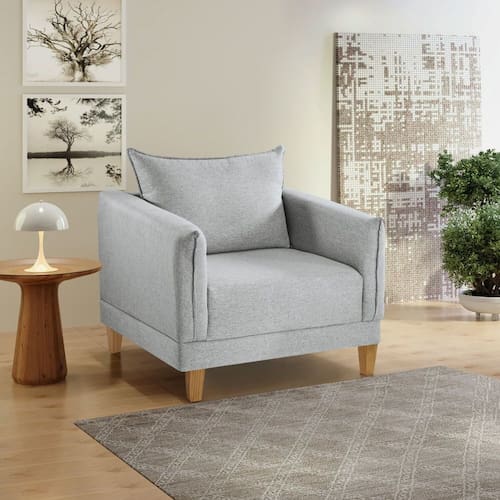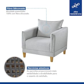 Chegou a sua nova companheira para relaxar com estilo: nossa Poltrona Decorativa! Com design moderno, tecido superconfortável e Pillow dos assentos com 10 cm de altura, ela é perfeita para aquele cantinho preferido que você se joga depois de um dia corrido. Feita com materiais de alta qualidade e pés de madeira, essa peça vai trazer aquele toque de sofisticação e conforto que você estava procurando. Ideal para qualquer ambiente, seja no escritório, na sala de estar ou uma poltrona para o quarto, ela vai ser a estrela da sua casa. Aproveite e transforme seu espaço com praticidade e bom gosto! Acompanha Almofadas extras: Não Acompanha Puff: Não Almofada do assento: Fixa Almofada do encosto: Removível Altura do assento até o chão: 45 cm Altura do Encosto: 46 cm Altura dos Pés: 14 cm Ambiente Principal: Sala de Estar Cor: Gelo Cor do Produto: Gelo Design Assinado: Não Enchimento do Assento: Espuma D-28 Enchimento do Braço: Espuma D-28 Encosto para a Cabeça: Não Estampado: Não Extensível: Não Firmeza do Assento: Macio Informações Complementares: Assento Pillow com 10 cm de altura Itens Inclusos: 1 Poltrona Linha ou Coleção: Melina Material do Braço: Espuma e Madeira Material dos Pés: Madeira de Eucalipto Modelo de Poltrona: Fixo Necessita Montagem: Não Origem do Produto: Nacional Peso: 35 kg Possui Percintas Elásticas: Sim Possui Pés: 04 Possui Rodízio: Não Recomendações de Uso, Manutenção e Limpeza: Não utilizar produtos químicos. Não utilizar produtos abrasivos. Não molhar. Utilizar pano macio e seco . Suporta Até (kg): 120 kg Tecido Predominante: Linho Tipo de Assento: Fixo Tipo de Encosto: Fixo Tipo de Espuma do Assento: Soft Tipo de Poltrona: Decorativa Marca: Celflex