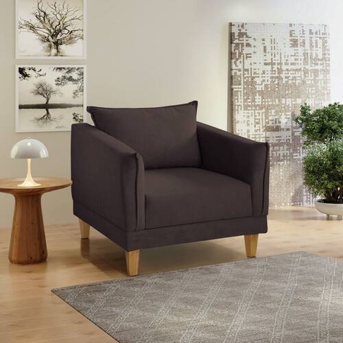 Chegou a sua nova companheira para relaxar com estilo: nossa Poltrona Decorativa! Com design moderno, tecido superconfortável e Pillow dos assentos com 10 cm de altura, ela é perfeita para aquele cantinho preferido que você se joga depois de um dia corrido. Feita com materiais de alta qualidade e pés de madeira, essa peça vai trazer aquele toque de sofisticação e conforto que você estava procurando. Ideal para qualquer ambiente, seja no escritório, na sala de estar ou uma poltrona para o quarto, ela vai ser a estrela da sua casa. Aproveite e transforme seu espaço com praticidade e bom gosto! Acompanha Almofadas extras: Não Acompanha Puff: Não Almofada do assento: Fixa Almofada do encosto: Removível Altura do assento até o chão: 45 cm Altura do Encosto: 46 cm Altura dos Pés: 14 cm Ambiente Principal: Sala de Estar Cor: Marrom Cor do Produto: Marrom Design Assinado: Não Enchimento do Assento: Espuma D-28 Enchimento do Braço: Espuma D-28 Encosto para a Cabeça: Não Estampado: Não Extensível: Não Firmeza do Assento: Macio Informações Complementares: Assento Pillow com 10 cm de altura Itens Inclusos: 1 Poltrona Linha ou Coleção: Melina Material do Braço: Espuma e Madeira Material dos Pés: Madeira de Eucalipto Modelo de Poltrona: Fixo Necessita Montagem: Não Origem do Produto: Nacional Peso: 35 kg Possui Percintas Elásticas: Não Possui Pés: 04 Possui Rodízio: Não Recomendações de Uso, Manutenção e Limpeza: Não utilizar produtos químicos. Não utilizar produtos abrasivos. Não molhar. Utilizar pano macio e seco . Suporta Até (kg): 120 kg Tecido Predominante: Veludo Tipo de Assento: Fixo Tipo de Encosto: Fixo Tipo de Espuma do Assento: Soft Tipo de Poltrona: Decorativa Marca: Celflex