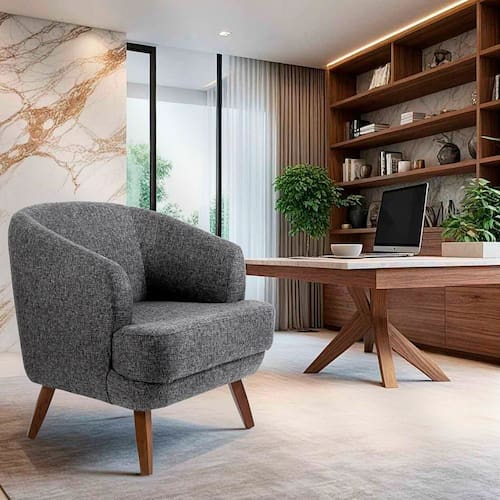 Estrutura fabricada com madeiras de eucalipto tratado, MDF e OSB unidas com grampos galvanizados. Percintas elásticas de nylon e espumas certificadas fazem o produto suportar pesos de até 120 quilos. Revestimentos com costura rebatida que possuem maior resistência a abertura de costuras. Acompanha Almofadas extras: Não Acompanha Puff: Não Almofada do assento: Não Possui Almofada do encosto: Não Possui Altura do assento até o chão: 45 cm Altura do Encosto: 38 cm Ambiente Principal: Sala de Estar Cor: Preto Mesclado Cor do Produto: Preto Mesclado Design Assinado: Não Enchimento do Braço: Espuma D-23 Encosto para a Cabeça: Não Estampado: Não Extensível: Não Itens Inclusos: 1 Poltrona Manual de Especificação Técnica: https://product-hub-prd.madeiramadeira.com.br/701015/documents/f678b770-ae9e-4a6f-b836-5a40fe1ae9962784781634817437673247616.pdf Marca: Domi Material do Braço: Madeira / Espuma / Tecido Material dos Pés: Madeira de eucalipto com haste rosqueável de aço, envernizado Modelo de Poltrona: Fixo Necessita Montagem: Não Origem do Produto: Nacional Peso: 23 kg Possui Percintas Elásticas: Não Possui Pés: 04 Possui Rodízio: Não Recomendações de Uso, Manutenção e Limpeza: Adequado para uso residencial, sua conservação/limpeza deve ser feita através de pano úmido sem esfregar. Suporta Até (kg): 120 kg Tecido Predominante: Linho Tipo de Assento: Fixo Tipo de Encosto: Fixo Tipo de Poltrona: Decorativa