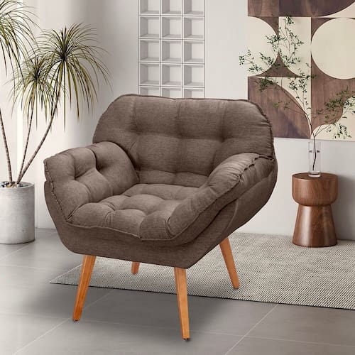 Desfrute da elegância do conforto e sofisticação com a Poltrona Miami. Sua versatilidade e funcionalidade se destaca proporcionando mobilidade e praticidade ao ambiente. Seus detalhes cuidadosamente pensados, conferem um visual contemporâneo e acolhedor, na sala de estar ou em um espaço de leitura elevando a estética do ambiente. Acompanha Almofadas extras: Não Acompanha Puff: Não Almofada do assento: Fixa Almofada do encosto: Não Possui Altura do assento até o chão: 50 cm Altura do Encosto: 92 cm Altura dos Pés: 30 cm Ambiente Principal: Sala de Estar codigo_ean: 7900288189073 Complexidade da Montagem: Baixa: pode ser montado por uma pessoa sozinha Cor: Café Cor do Produto: Café Design Assinado: Não Enchimento do Assento: Fibra Siliconada Enchimento do Braço: Fibra Siliconada Encosto para a Cabeça: Não Estampado: Não Extensível: Não Firmeza do Assento: Macio Itens Inclusos: 1 Poltrona, Kit Ferragens e Manual de Montagem Linha ou Coleção: Miami Marca: Ares Estofados Material do Braço: Fibra Siliconada Material dos Pés: Madeira Eucalipto Modelo de Poltrona: Fixo Necessita Montagem: Sim Origem do Produto: Nacional Peso: 19 kg Possui Percintas Elásticas: Sim Possui Pés: 04 Possui Rodízio: Não Recomendações de Uso, Manutenção e Limpeza: utilizar pano macio e úmido para a limpeza Sistema de Montagem: Manual Suporta Até (kg): 120 kg Tecido Predominante: Linho Tipo de Assento: Fixo Tipo de Encosto: Fixo Tipo de Espuma do Assento: Fibra Siliconada Tipo de Poltrona: Decorativa Marca: Não Informado