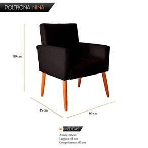 Poltrona Decorativa Nina Suede Preto - Bruna Estofados